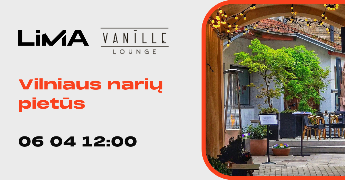 Žmonės ir jų kuriama bendruomenė yra kertinė ir esminė LiMA egzistavimo ašis. Siekiant dar labiau stiprinti narių tarpusavio bendravimą LiMA Vilniaus skyriaus taryba kviečia kartu pietauti! Susitinkame restorane „Vanille Lounge“, kuris pristato šiuolaikinę sezoninę europietišką virtuvę, nepamiršdamas klasikos. Siekia suderinti klasikinę europietišką virtuvę, lietuviškas maitinimosi tradicijas, sezoniškumą, atskleidžiant tikrąjį produktų skonį ir modernų jaunų virtuvės šefų požiūrį į maistą.