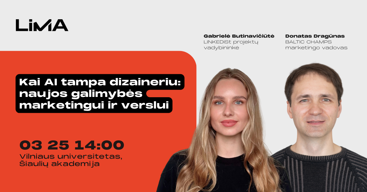 „Kai AI tampa dizaineriu: naujos galimybės marketingui ir verslui“. UAB „Baltic Champs“ rinkodaros vadovas, LiMA narys ir AI entuziastas Donatas Dragūnas. Dirbtinis intelektas sparčiai keičia tai, kaip kuriami vizualai marketinge. Tai, kas anksčiau reikalavo dizainerio, brangių programų, specifinių įgūdžių dirbant su jomis ir daug laiko, šiandien dažnai gali būti padaryta pasitelkus pažangius AI vaizdų generavimo modelius. Donatas Dragūnas pristatys, kokias naujas galimybes marketingui ir verslui atveria modernūs AI įrankiai, tokie kaip „Nano Banana“, ir kaip juos praktiškai panaudoti kasdienėje veikloje. Taip pat bus parodyta, kaip paprasti ir prieinami sprendimai leidžia greitai kurti ar redaguoti vizualus net ir tiems, kurie nėra profesionalūs dizaineriai. |